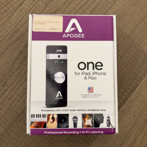 Das Apogee ONE (1. Generation) ist ein kompaktes USB-Audio-Interface, das speziell für mobile Aufnahmen mit Mac entwickelt wurde. Es kombiniert Audio-Interface und integriertes Kondensatormikrofon in einem kleinen Gehäuse und eignet sich ideal für Gesang, Sprachaufnahmen oder Instrumente unterwegs. Über das Breakout-Kabel können zudem ein externes XLR-Mikrofon oder ein Instrument angeschlossen werden.