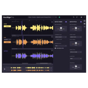 VocAlign Pro bietet erweiterte Funktionen wie SmartAlign, SmartPitch, Tightness-Control, Formant-Shifting und Gruppenverarbeitung, mit denen mehrere Vocal-Tracks automatisch angepasst werden können, während der natürliche Klang erhalten bleibt. Durch die automatische Analyse und Synchronisation spart das Plugin viel Zeit gegenüber manueller Bearbeitung und gehört deshalb zu den Industriestandards für die Bearbeitung von Vocal-Stacks und Dialogaufnahmen.